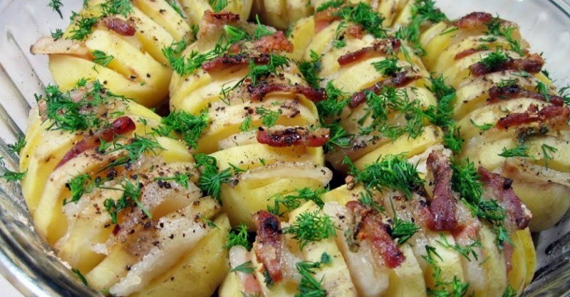 Картопля-гармошка в духовці – прекрасне страва як для сімейної вечері, так і для святкових посиденьок. Мало того, що картопля за цим рецептом виходить дуже смачною, так ще й готувати її простіше простого.